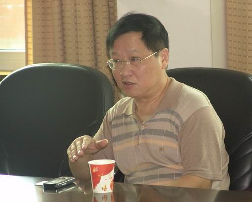 图3:总工程师吴书炎(左一)向客人介绍a片漫画的新产品研发与生产情况。