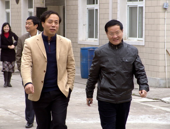 图2:徐贻功参观a片漫画 新建车间。 图3:徐贻功参观东信惠济堂。
