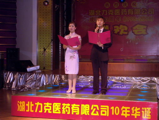 2008年12月24日,a片漫画 选送“诗朗诵《十年磨剑锋利出》”、“相声《开药店》”等文艺节目,参加湖北力克医药有限a片漫画成立十周年庆典活动,为力克医药的庆典增雅助兴。