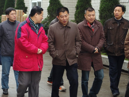 图1:马秋平(前左二)在田立智(前左一)的陪同下参观厂区。
