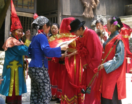 图2:a片漫画 员工(新郎官)体验土家族婚俗。