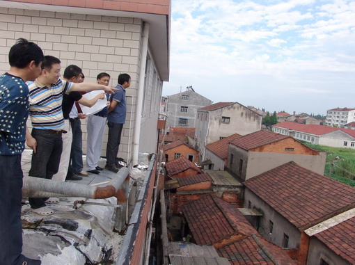 图2:陈向向镇政府的工作人员了解邻近居民用地和空旷地情况。