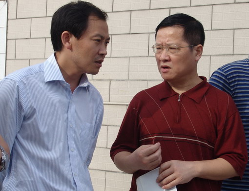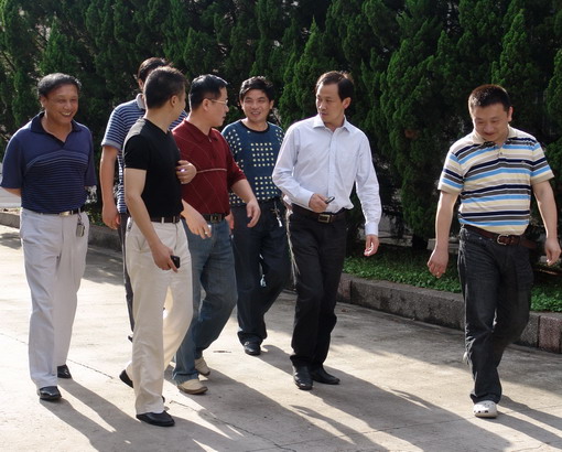 图1:邹太新(右二)在陈向(右一)的陪同下参观厂区。