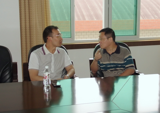图1:胡红斌(左)与田立智(右)亲切交谈。