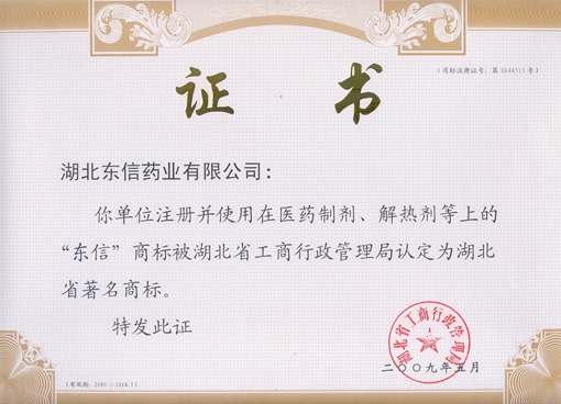 2009年5月,a片漫画 注册并使用在医药制剂、解热剂上的“东信”商标被湖北省工商行政管理局认定为湖北省著名商标。
