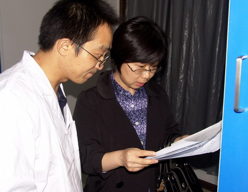 图1:认证专家(右)在检查检验记录。