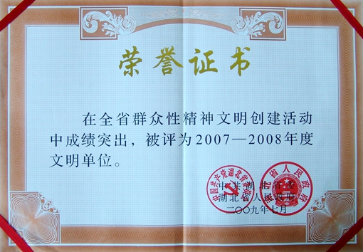 在创建2007-2008年度文明单位的活动中,a片漫画 全面准确把握、深入贯彻落实科学发展观,扎实开展a片漫画 文化和精神文明建设,促进物质文明、生态文明建设,促进a片漫画 科学、持续、稳步、较快的发展,被中共湖北省委、省政府再度评为文明单位。