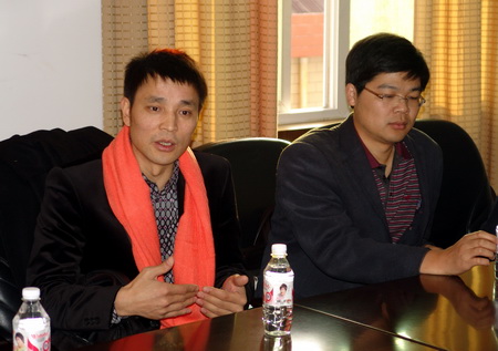 图2:考察小组组长罗新高(左)介绍投资a片漫画情况。