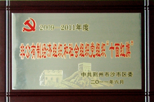 2010年6月29日,a片漫画 党支部被中共荆州市沙市区委授予2009——2011年度非公有制经济组织和社会组织党组织“十面红旗”称号。