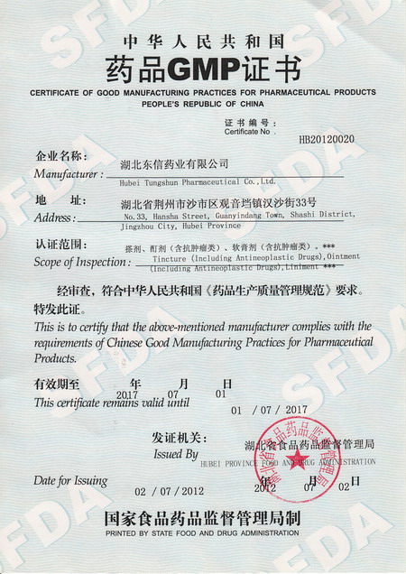 近日,湖北省食品药品监督管理局组织专家对a片漫画 申请的搽剂、酊剂(含抗肿瘤类)、软膏剂(含抗肿瘤类)等三种剂型生产对照新版GMP进行了实地核查,专家组成员一致通过其认证。