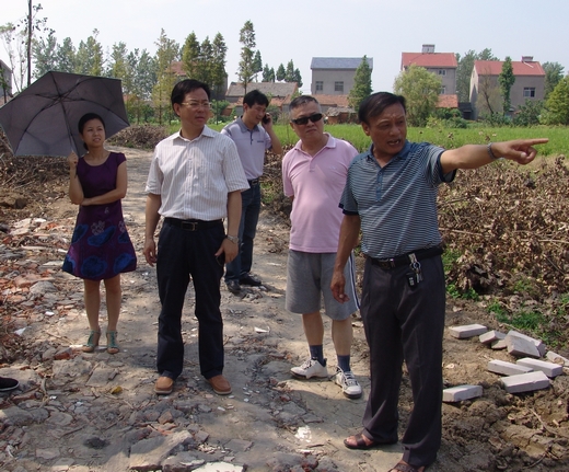 图3:邓勇(左二)、文玉莲(左一)在五期工程现场。
