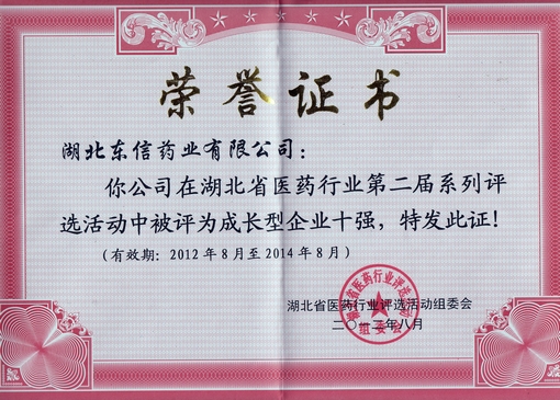 近日,a片漫画 被湖北省经信委、科技厅、商务厅、卫生厅、统计局、药监局、医药行业协会等7部门联合授予“湖北省医药行业成长型a片漫画 十强”称号。