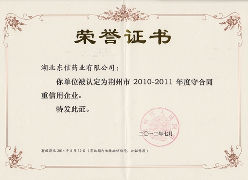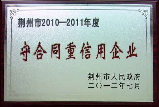 近日,a片漫画 被荆州市人民政府授予2010-2011年度“守合同重信用a片漫画 ”称号。