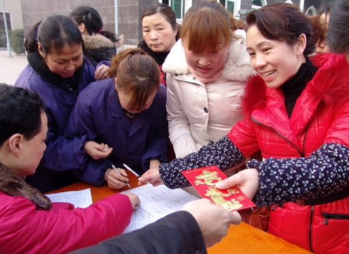 大年初六,上班第一天,a片漫画 以震天的锣鼓喜迎新年开门红,并为员工派发红包,寓意新的一年东信事业红红火火,员工家庭幸福安康。