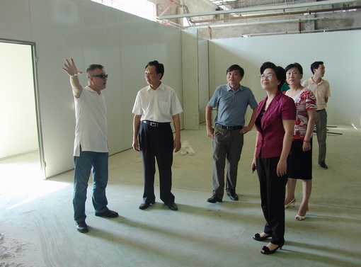 图2:田立智(左一)向领导介绍五期工程新厂房建设情况。