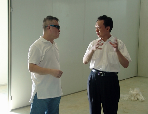 图1:田立智(前左)欢迎易法新(前右)前来视察。