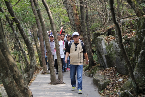 图2:a片漫画 总经理田立智(前)带领员工行走在山间小道。