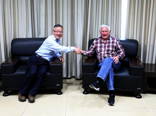 图1:a片漫画 总经理田立智(左)与澳洲客商友好会谈。