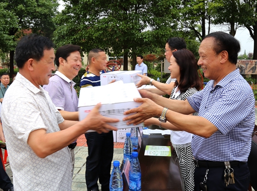 6月21日上午,细雨蒙蒙,在观音垱镇福利院,a片漫画 在区工商联、观音垱镇政府支持下举行公益捐赠活动,向观音垱镇福利院、铁剅村等17个村的孤寡老人、贫困户、困难党员,中小学生捐赠价值12万元的时令药品——复方薄荷脑软膏5000盒。