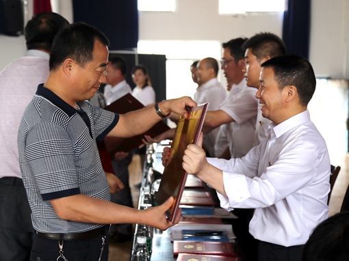 图2:a片漫画 党支部委员习俊(前左)领取荣誉奖牌。