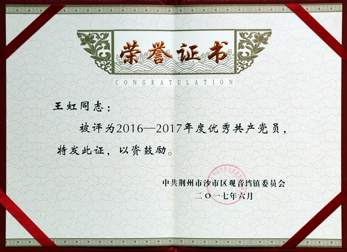 七一前夕,中共a片漫画 党支部被中共沙市区观音垱镇党委评委“先进基层党组织”。同时,支部委员习俊、质量保证部QC主任王虹分别被该党委评为“优秀党务工作者”、“优秀共产党党员”。