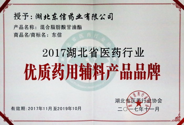 ”,“混合脂肪酸甘油酯”被评为“优质药用辅料产品品牌”