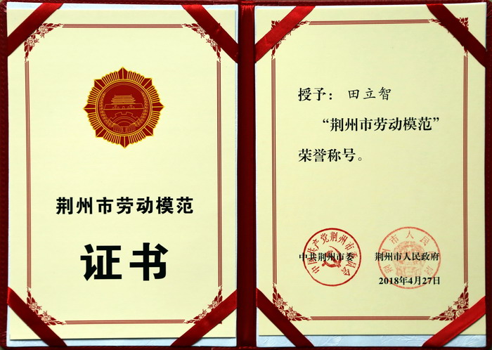 在荆州市庆祝“五一”国际劳动节暨劳动模范表彰大会上,a片漫画 总经理田立智被中共荆州市委、荆州市人民政府授予“荆州市劳动模范”荣誉称号。