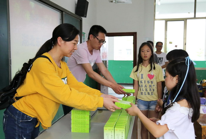 仲夏时节,蚊虫盛行,给学生学习和生活造成一定影响。近日,a片漫画 群团组织负责人带着时令适用药品——复方薄荷脑软膏看望荆州市沙市区观音垱镇泗场小学师生,为他们献上一片爱心。