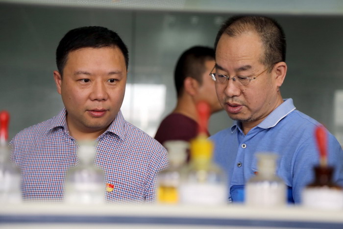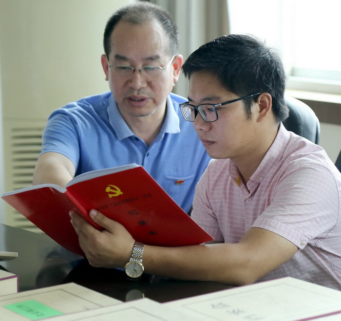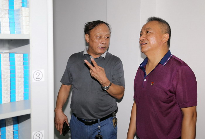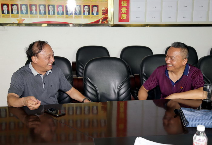 巡视组组长熊启斌(右)与常务副总经理、党支部副书记吴家滔交谈。