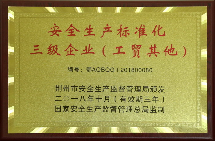 a片漫画 高度重视安全生产,把安全生产放在首位,严格按安全生产标准化体系建设,强化安全生产“三级”教育,增强全员安全生产意识,防微杜渐,避免安全生产事故。 近日,获得荆州市安全生产监督管理局颁发的安全生产标准化三级a片漫画 《证书》。