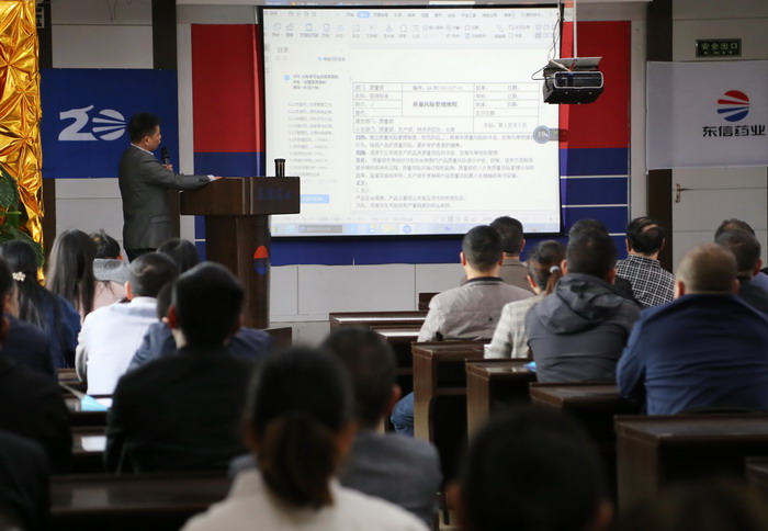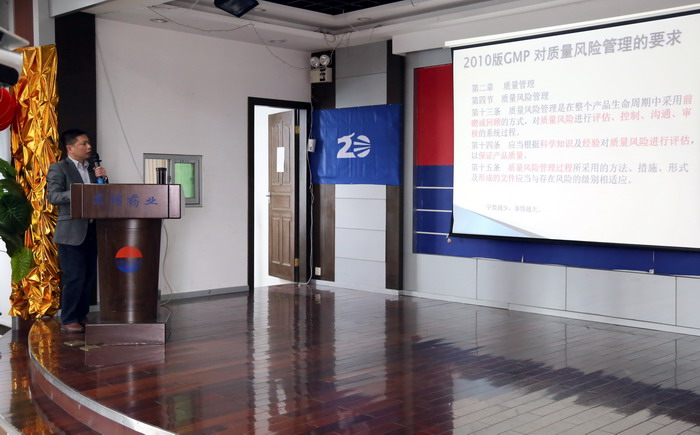 生产副部长杜发斌讲授药品生产质量管控知识。
