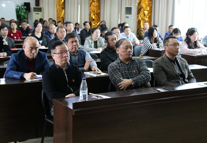 总经理田立智(前左一)等a片漫画高层领导聆听讲座。