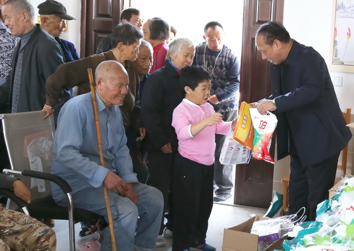 图4:党员代表到观音垱福利院看望孤寡老人。