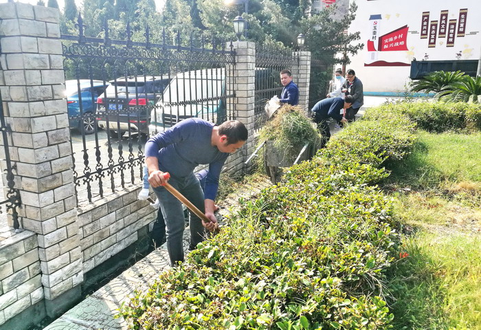 图6:党员清理卫生死角。