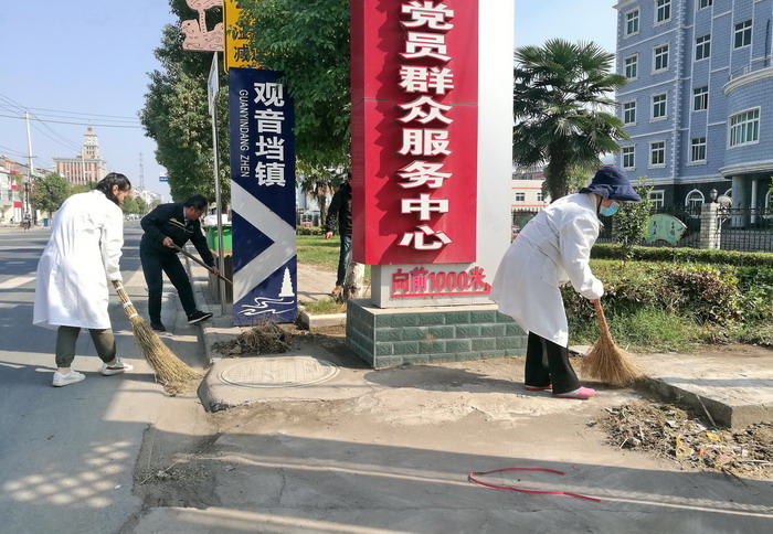图7:党员清理卫生死角。