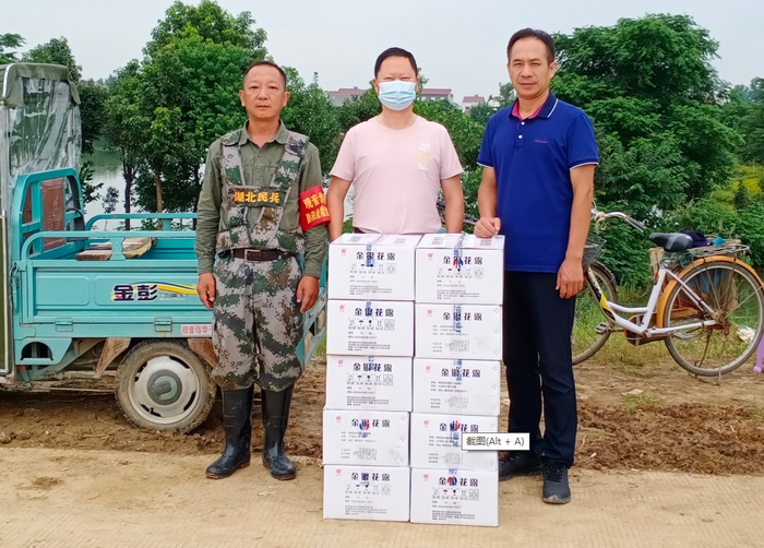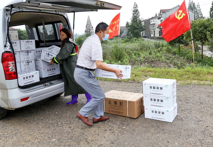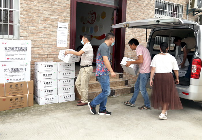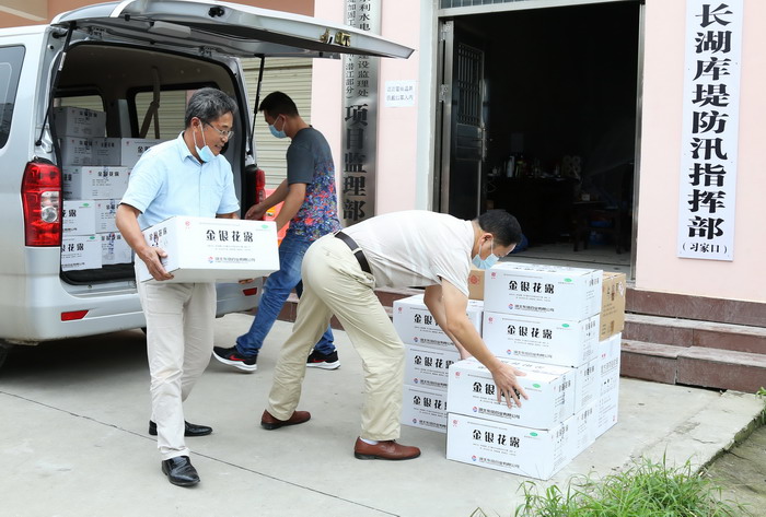 向在长湖防汛的干群捐赠药品