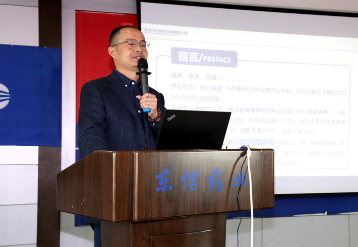东信医药副总经理李建军就四季度营销工作进行部署。