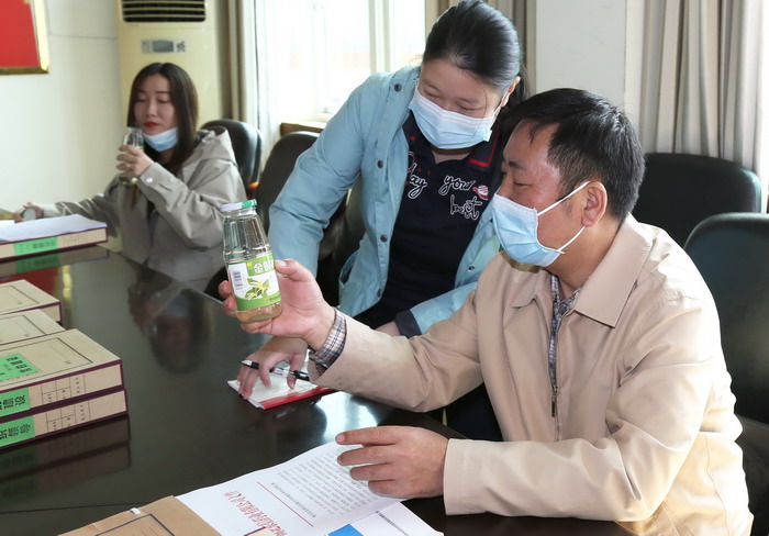 检查组长侯胜利品尝a片漫画生产的金银花露。