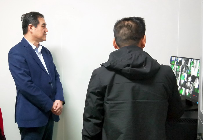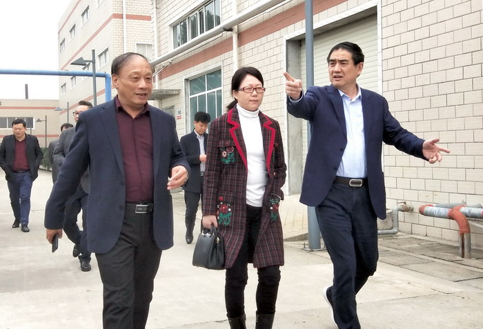 赵序沨(右一)、罗中平(右二)参观厂区。