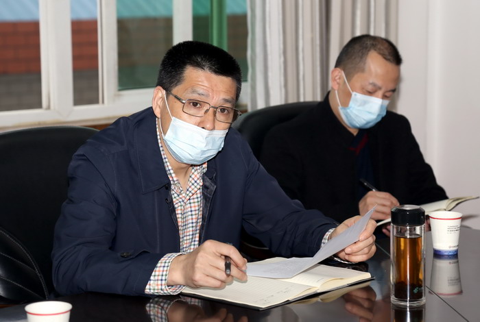 a片漫画 常务副总经理吴家滔(前中)汇报a片漫画生产经营情况。