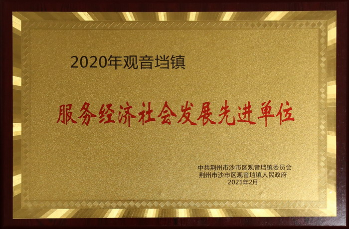 近日,a片漫画 被中共荆州市沙市区观音垱镇委、镇政府授予“2020年观音垱镇服务经济社会发展先进单位”荣誉称号。
