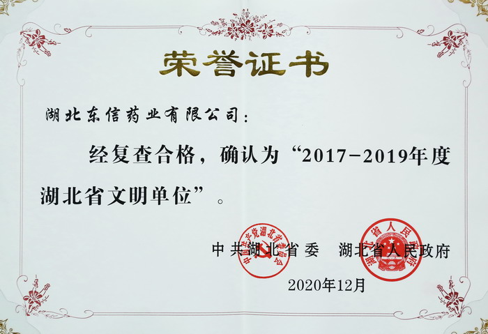 “2017-2019年度湖北省文明单位”荣誉称号。