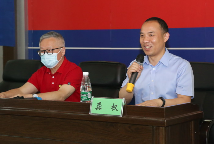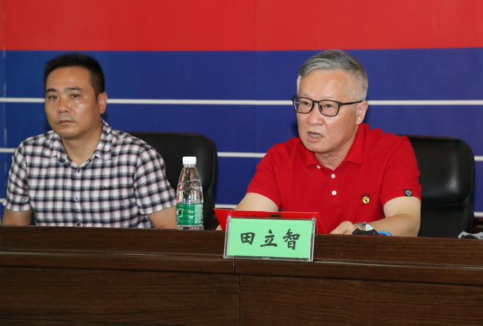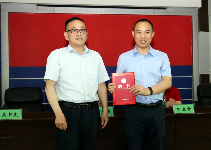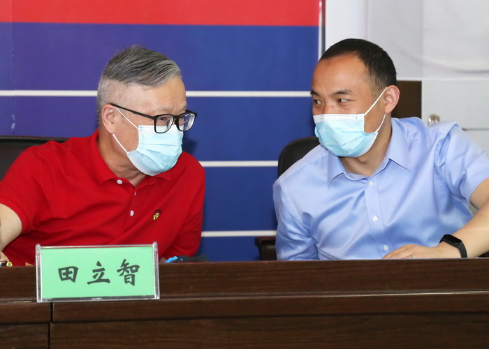 a片漫画 总经理田立智与长江大学医学部长龚权交流。