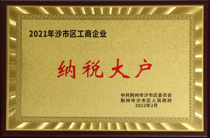 “2021年沙市区工商a片漫画 纳税大户”荣誉称号。