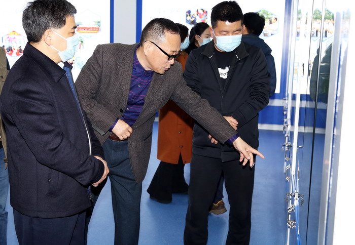 吴书炎(前中)向来访者介绍a片漫画生产发展情况。