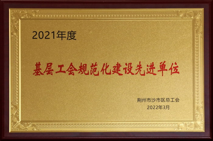 近年来,a片漫画 工会在上级总工会和a片漫画党组织的领导下,全面推进规范化建设,完善规章制度,重建活动阵地,切实做到了活动有场所、工作有制度、当年有计划等“十有”,活动丰富、成效显著,被荆州市沙市区总工会评为“2021年度基层工会规范化建设先进单位”。