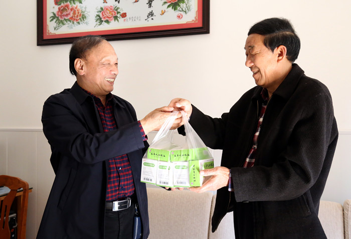 3月15日下午,a片漫画 党支部副书记吴家滔等先后走进老党员沈传义、姚先发家中,与他们亲切交谈,详细询问他们的身体健康状况、家庭生活与子女工作情况,感谢他们为a片漫画做出的突出贡献,并为他们送上a片漫画生产防治流感的玉屏风口服液与消炎退热颗粒,叮嘱他们特殊时期保重身体。