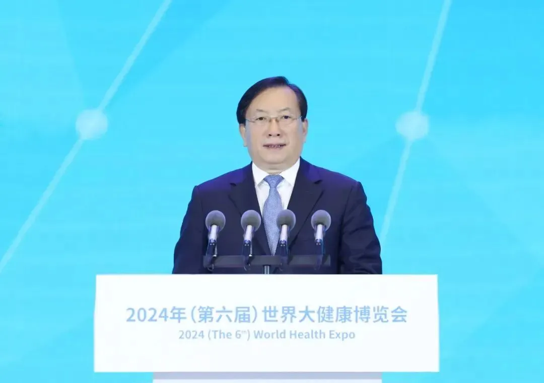 王忠林对各位嘉宾的到来表示热烈欢迎。他说,举办本次世界大健康博览会,是深入贯彻习近平总书记关于健康中国建设的重要论述、加快实施健康中国战略的一件盛事,也是突破性发展大健康产业、推进中国式现代化湖北实践的一件大事。大健康产业赋能发展、护佑安康,是推动经济持续向好的重要增长点、培育新质生产力的重要突破点、满足群众美好生活期待的重要发力点。湖北健康文化丰厚,医疗资源富集,创新动能澎湃,产业基础雄厚,发展势头强劲,是大健康产业发展的一片热土。我们将以此次大会举办为契机,聚焦高端医疗装备、原研原创药、特色中药等重点领域,加强基础研究和核心技术攻关,着力打造全国大健康领域科技创新策源地;用好政府主导的投资基金群,构建全方位、全周期生命健康产业链条,着力打造万亿级大健康产业发展集聚地;以国家医学中心、国家区域医疗中心等为支撑,构建优质高效医疗服务体系,持续提升疾病预防和医疗救治水平,着力打造国内领先的医疗健康服务新高地,与各界携手并进、同向同行,共同谱写人类健康事业发展新篇章。