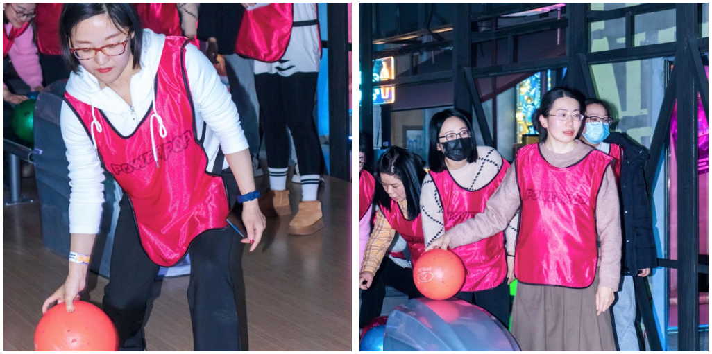 抛出精彩,唤醒活力!保龄球运动是一项考验技巧和体力的竞技项目。在工作人员的指导下,女神们潜能爆发,在保龄球被抛出的那一刻,她们那沉稳的站姿、专注的眼神,右臂在瞬间释放出一股能量,球沿着赛道飞驰,留下一道完美的弧线,仿佛在那一刻释放出了内心的力量,用力量与技巧的完美结合,打出一个精彩的自己!