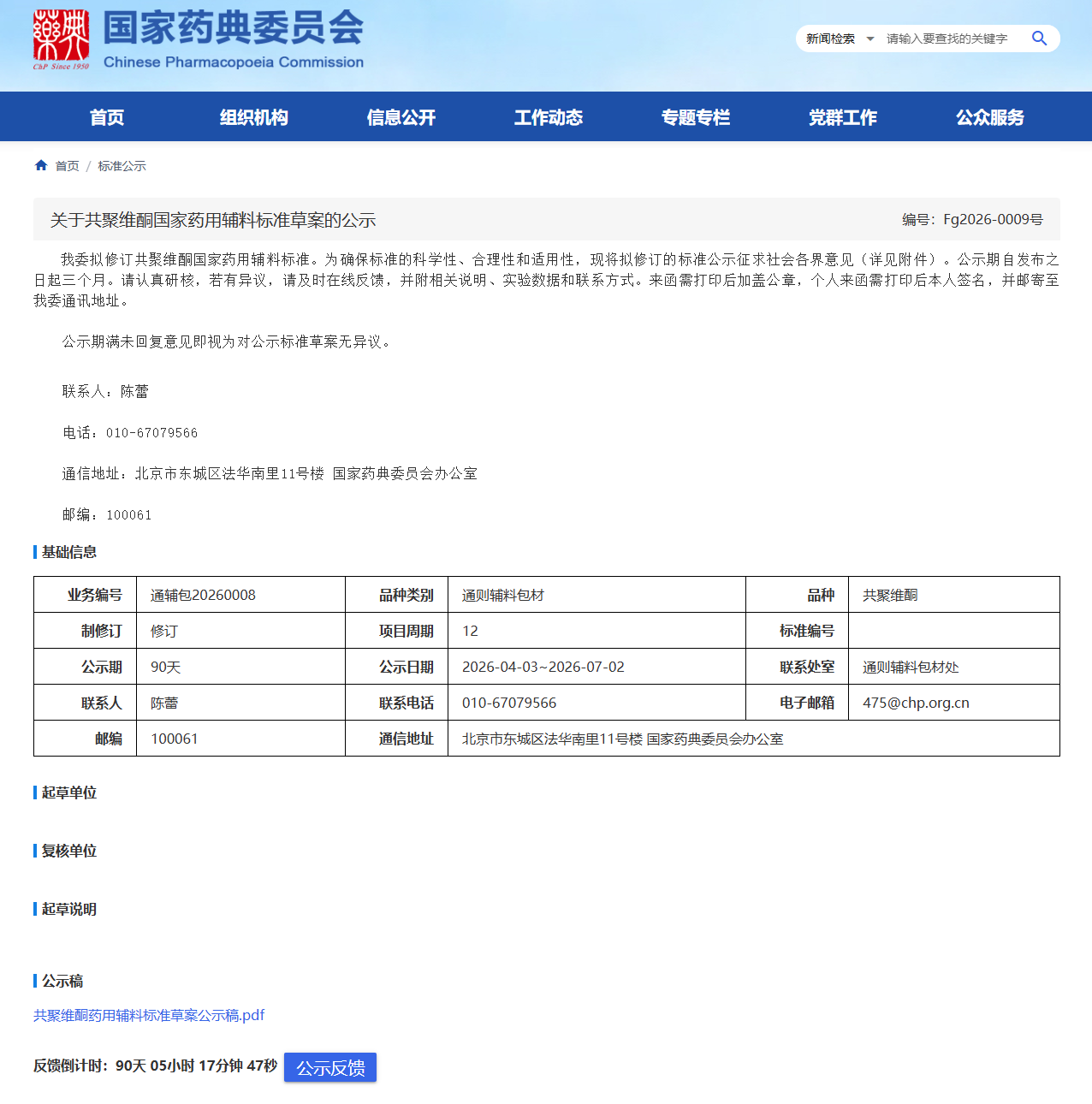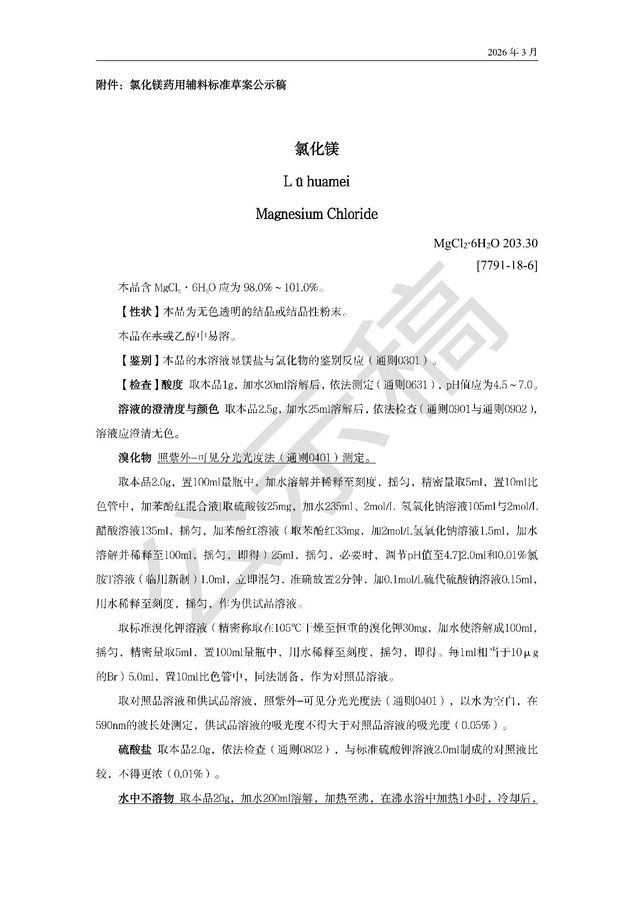4月3日,国家药典委公示了4个药用辅料标准:混合脂肪酸甘油酯(硬脂)、磷酸三丁酯、共聚维酮、氯化镁。